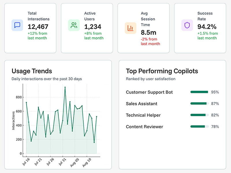 Most teams launch their first copilot in days. Larger or more complex builds may take longer depending on scope.